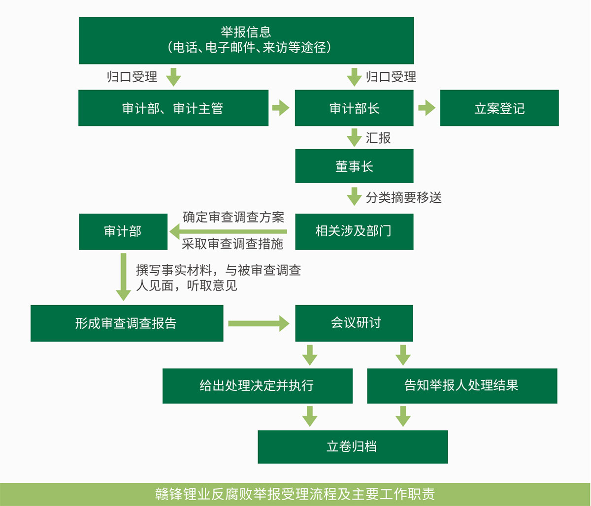 2023 年赣锋廉洁建设开立体化格局,重拳出击筑生态式长城;首先营造立体化传播格局的反腐风势:赣锋反腐宣传经历了较长的发展过程,自19年的廉洁自律宣誓大会为引入关注的开端,到20年趁热打铁地开展了深入到每个工厂进行反腐宣传的下基层活动,再到21年自查自纠专项的反腐里程碑,22年增设专项廉洁账户,如今发展到反腐培训加主题活动大会加线上线下多渠道引流造势和反腐专业人员主导以及内外部联动反腐的全方位、深层次、立体化的格局,誓要将蛀虫烂根连根拔起;其次赣锋也建立了生态式净化功能的廉洁长城:坚持高层倡议的“零容忍”原则去惩处害群之马,抓住典型腐败贿赂案件进行宣导,掸一掸灰,清一清泥,净化赣锋从业生态,筑起不能腐、不敢腐的廉洁长城,铺一条赣锋可持续发展之路的康庄大道。