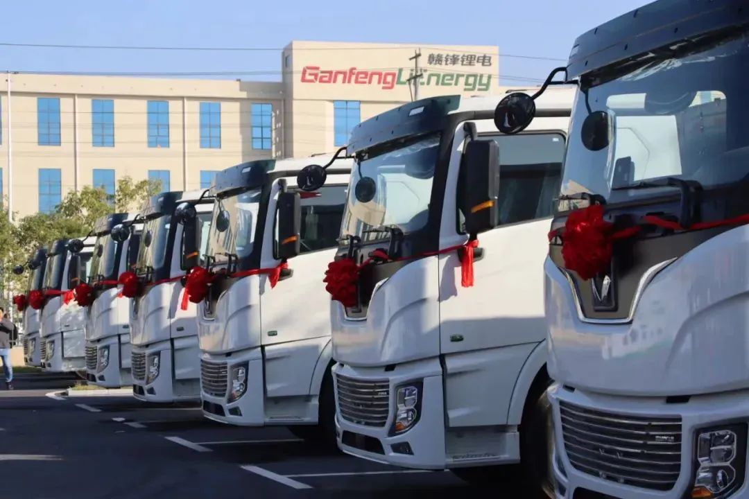 ▲首批搭载赣锋锂电方形磷酸铁锂电池的电动重卡牵引车