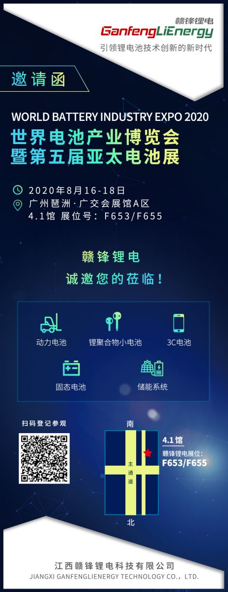 8月16日~8月18日,“2020世界电池产业博览会暨第五届亚太电池展”将于广州广交会展馆开幕,赣锋锂电受邀出席本届展会。